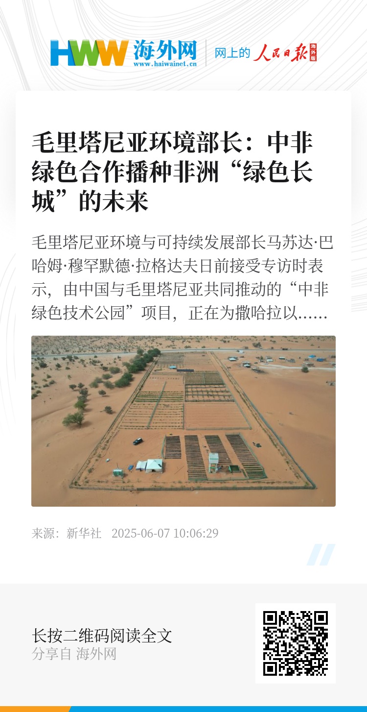 展望未来,拉格达夫表示,中非绿色合作已进入深耕阶段。“非洲‘绿色长城’建设已不再是梦想——在这项非凡合作的推动下,它正生根发芽。”