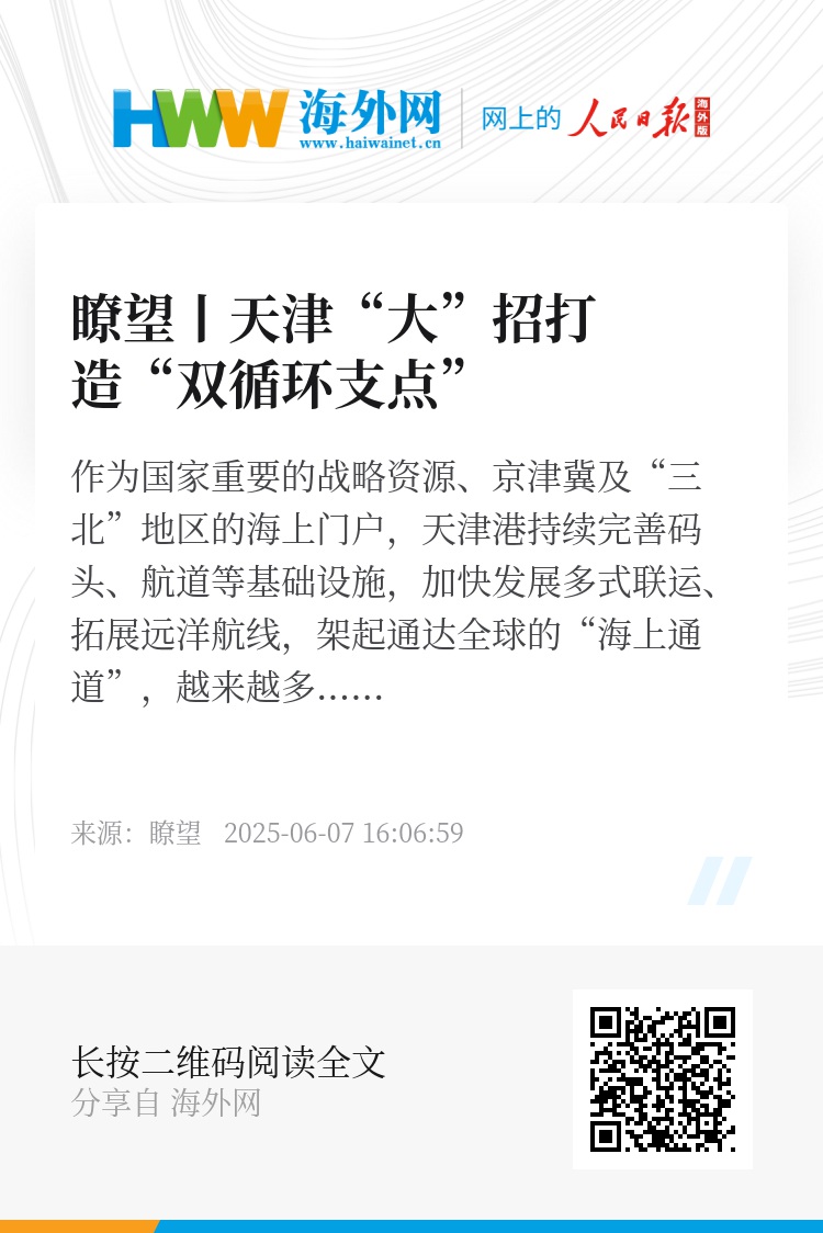从巴拿马“地中海萨玛”轮刷新天津港第二集装箱码头历史最高生产效率纪录,到更多国产汽车通过天津港驶向南美等新兴市场……作为京津冀及“三北”地区的海上门户,天津港持续完善码头、航道等基础设施,加快发展多式联运、拓展远洋航线,架起通达全球的“海上通道”,串起全球贸易版图。