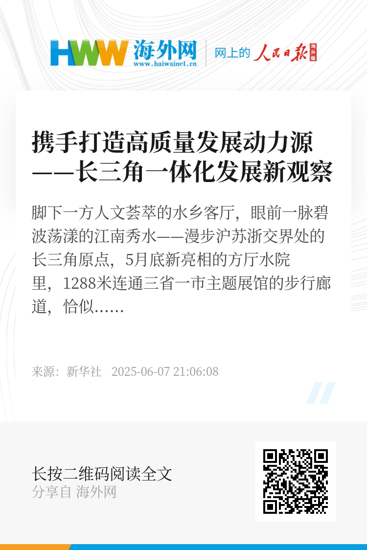 攥指成拳,共绘“同心圆”;同频共振,奋进新征程。长三角更高质量一体化发展新图景正徐徐展开,必将为全国经济社会发展贡献更多新力量。