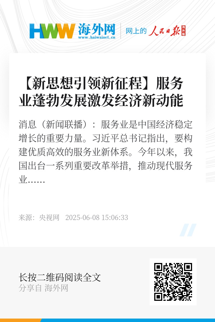 随着一系列政策加力显效,服务创新力度不断提升,服务供给更加丰富,高质量发展的现代服务业,必将为中国经济提供更有力支撑,为全球经济发展注入澎湃动能。