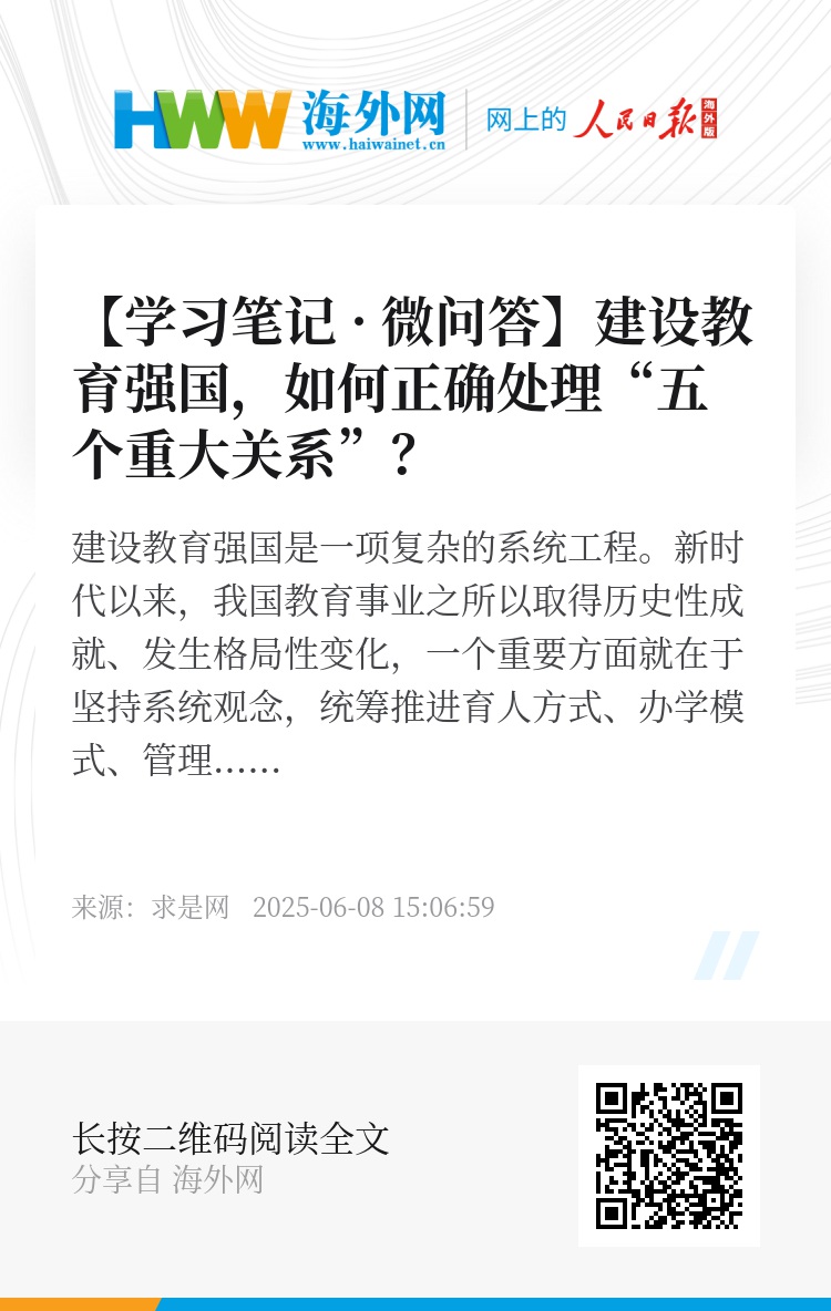 在《求是》杂志2025年第11期刊发的习近平总书记重要文章《加快建设教育强国》中,总书记着眼于实现2035年建成教育强国的战略目标,明确提出教育强国建设需要正确处理的“五个重大关系”,揭示了教育强国建设的科学规律。