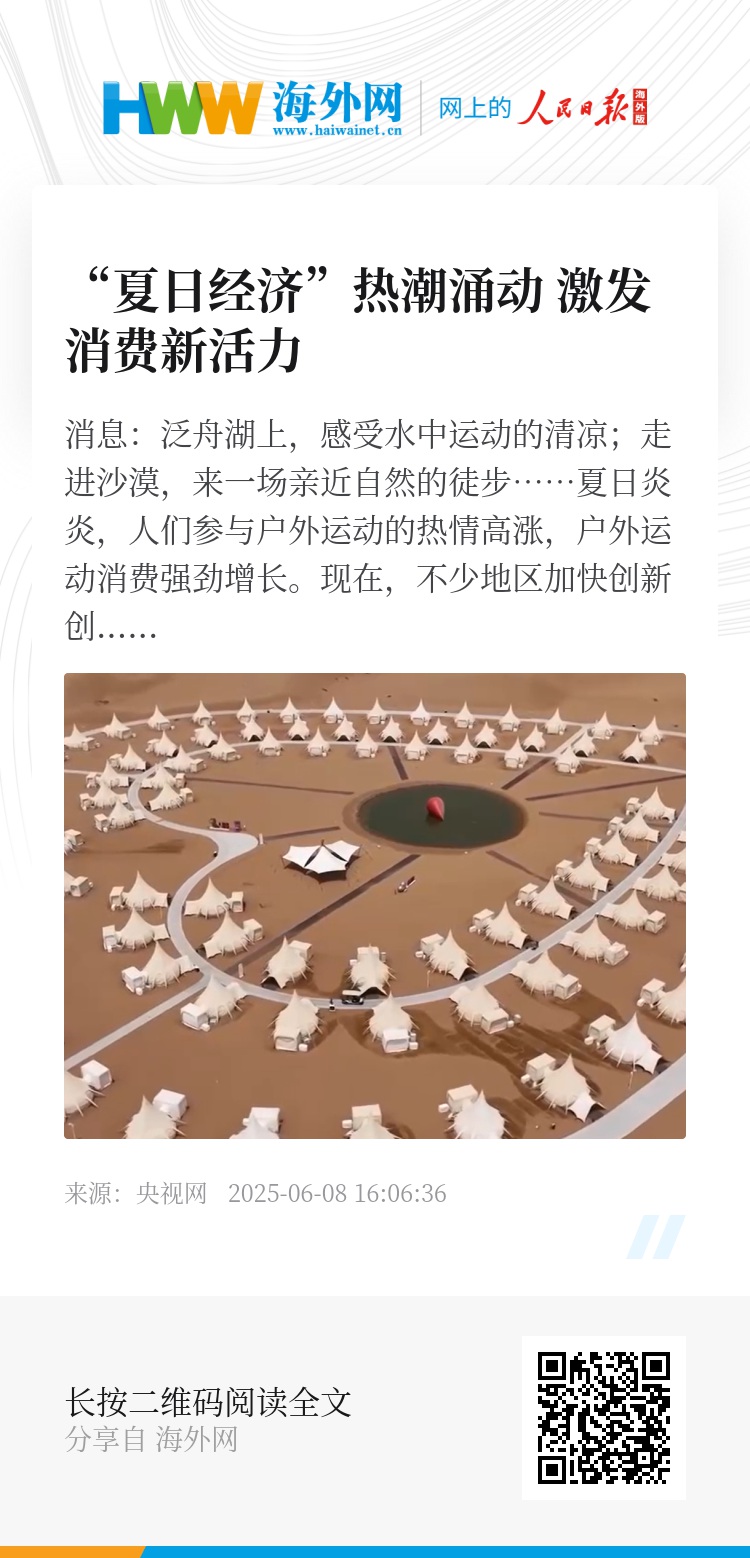 现在,不少地区加快创新创造“夏日经济”新业态、新模式、新场景,带动周边住宿、餐饮等消费。