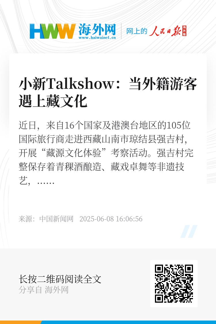 近日,来自16个国家及港澳台地区的105位国际旅行商走进西藏山南市琼结县强吉村,开展“藏源文化体验”考察活动。强吉村完整保存着青稞酒酿造、藏戏卓舞等非遗技艺,其贵族庄园建筑更是西藏文化瑰宝。考察团成员在强吉林卡体验了传统藏装穿戴、林卡欢聚等特色活动。当地创新的文旅露营林卡让国际旅行商赞叹不已。此次考察将推动西藏特色旅游产品进入国际市场,助力打造世界级旅游目的地。