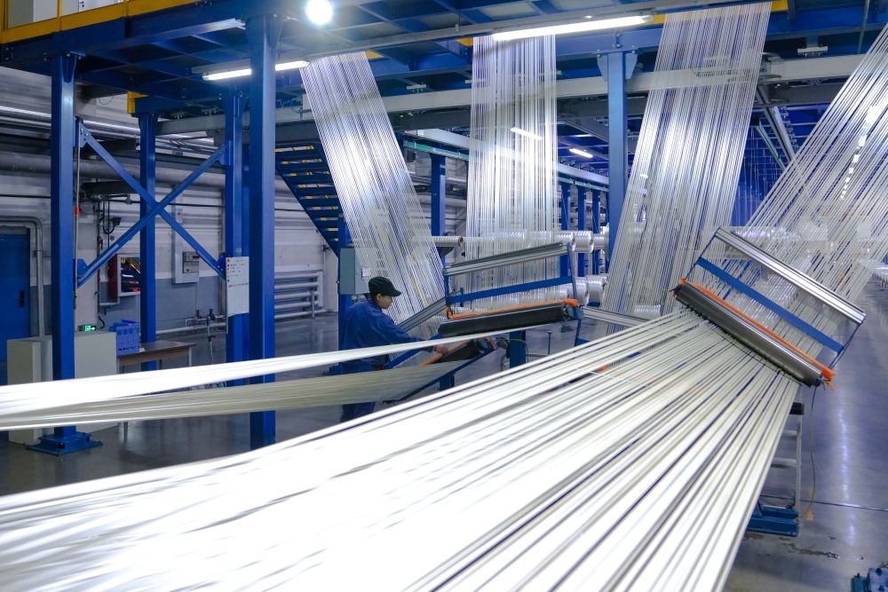 走进吉林化纤公司纺丝车间,一束束洁白的碳纤维原丝如瀑布倾泻而出,只有钢板尺宽窄薄厚的原丝里竟有50000根单丝。从传统纺织进军新材料,吉林化纤研究团队苦干10年,以“宁可青丝变白发,也要白丝变黑丝”的精神打破国际封锁,研究出属于自己的大丝束碳纤维。