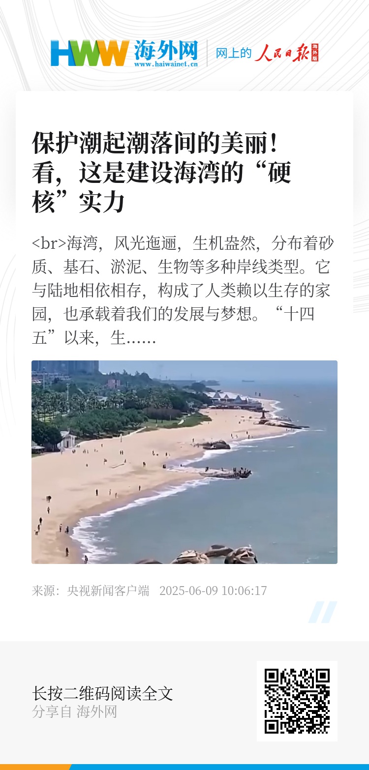 沿着中国蜿蜒的海岸线,大大小小的海湾如同散落的翡翠,在阳光照耀下闪烁着璀璨光芒。在这里,百姓的笑语欢歌与潮起潮落的自然韵律相映成趣。到2027年,美丽海湾建成率要达到40%左右,现在,唐山、威海等7座滨海城市正展开全域美丽海湾建设。
