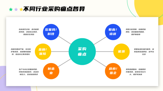 报告指出,不同行业采购的痛点各异,如互联网/科技行业注重技术迭代与高性能,金融/保险行业强化合规与安全防护,制造业需实现生产与办公系统协同等。但值得一提的是,特定信息安全与采购成本控制是各行业在各场景下的共性关注点。