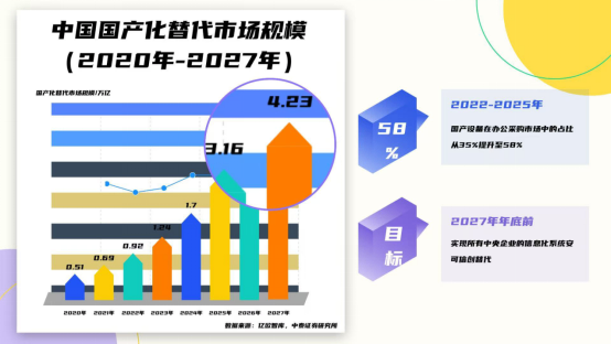随着国家对信息安全和自主可控重视程度的不断提高,国产化需求升级,政府和企业纷纷加大国产办公设备和软件采购力度。数据显示,2022-2025年,国产设备在办公采购市场中的占比从35%提升至58%。
