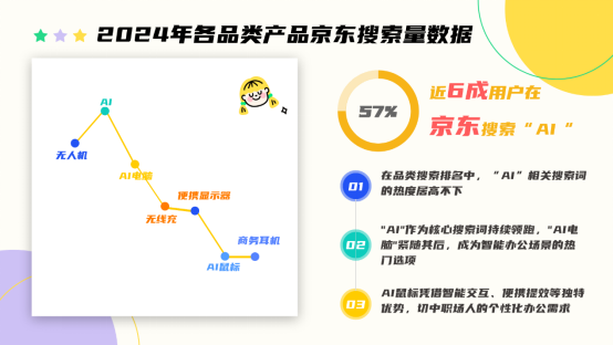 AI技术正深刻重塑办公行业的生态格局。报告显示:近6成用户在京东主动搜索“AI”相关产品。AI电脑、AI鼠标、带AI功能的笔记本、手机、工作站、台式机等正在成为企业办公的标准配置之一,这些AI工具功能强大,不仅能够智能解析数据、自动生成报告,帮助企业提升决策效率,还能为员工提供高效的工作流优化、智能文案生成等功能,显著提高个人工作效率。随着AI产品在办公领域的应用日益广泛,从智能会议设备到AI辅助决策系统,人工智能正在重构办公场景,推动企业从“人力驱动”向“算法驱动”转型。