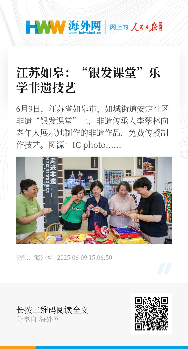 32869121,.江苏如皋:“银发课堂”乐学非遗技艺,.2025-06-09 15:31:50,.204589,.黄之安、侯兴川