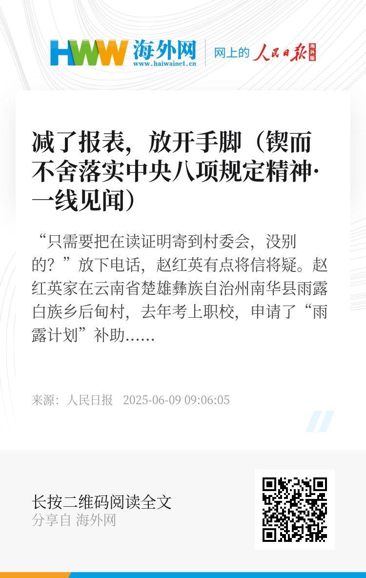 填表少了,是最直观的变化。“村干部每周平均报表由21次降到了1次!”赵红兰说。
