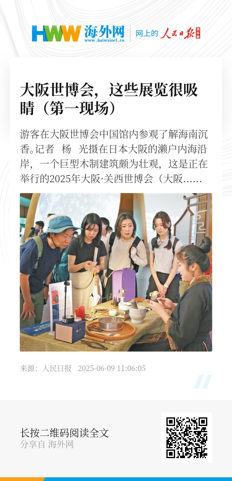 游客在大阪世博会中国馆内参观了解海南沉香。