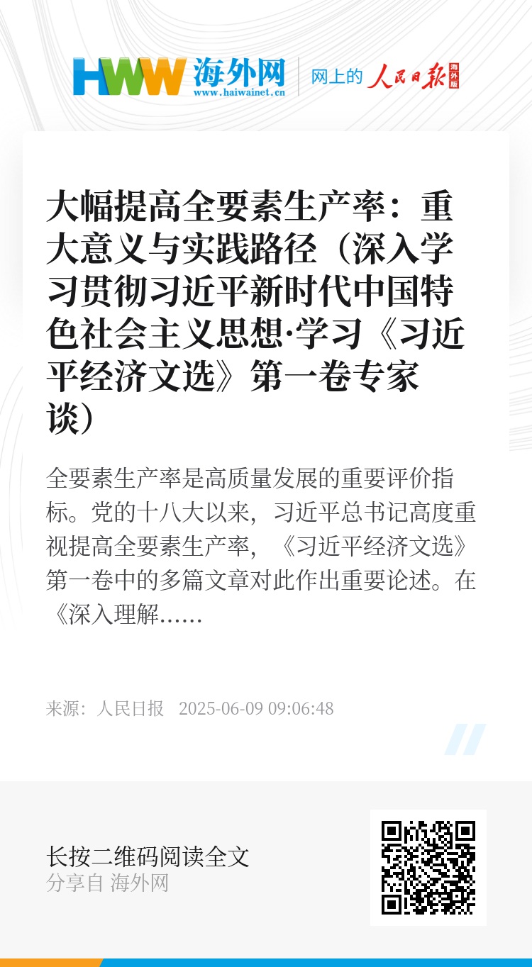 通过大幅提高全要素生产率推动新质生产力加快发展