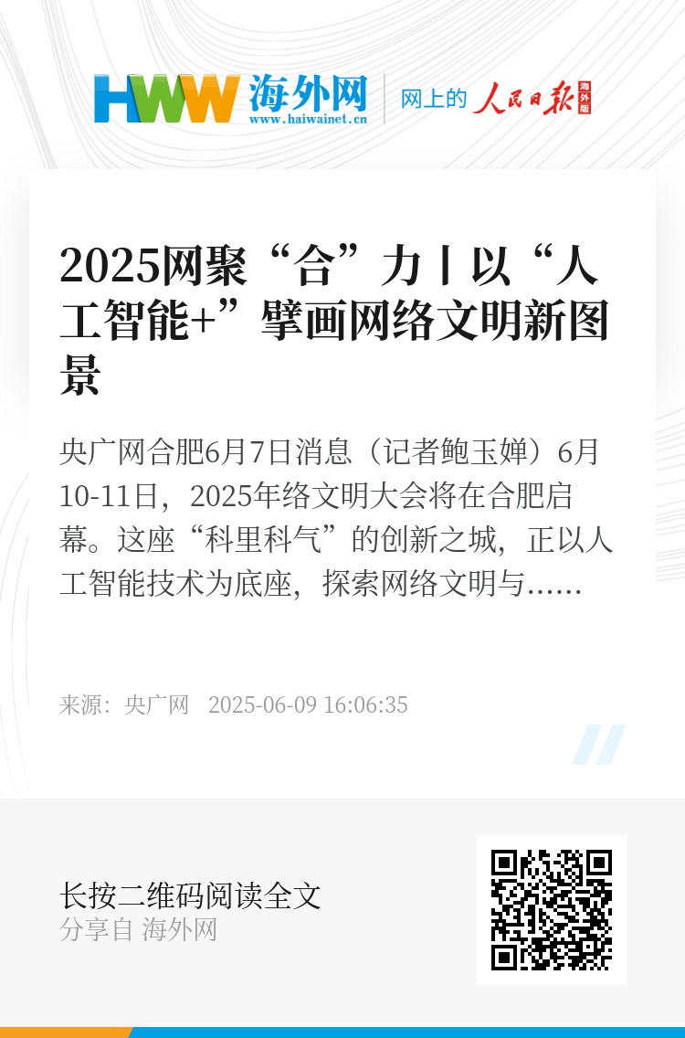 央广网合肥6月7日消息(记者鲍玉婵)6月10-11日,2025年中国网络文明大会将在合肥启幕。这座“科里科气”的创新之城,正以人工智能技术为底座,探索网络文明与科技深度融合的“合肥路径”。作为全国唯一同时承担国家新一代人工智能产业重点布局和数据标注基地建设的城市,合肥不仅以人工智能赋能千行百业,更将其作为净化网络生态、传递文明价值的关键引擎。