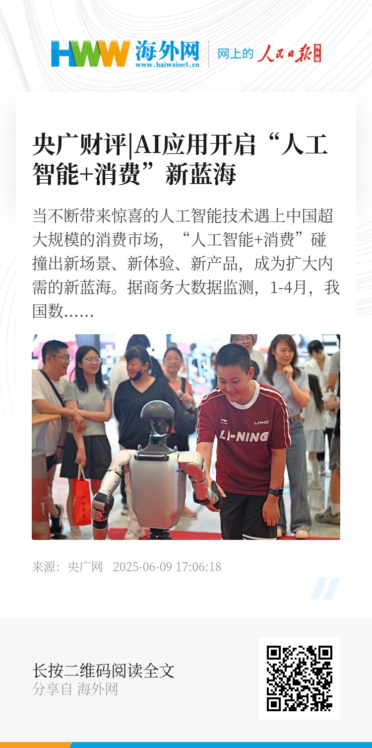 作为消费领域的新鲜事物,人工智能消费还处于探索期,在个人数据保护、产品监管等领域,需与时俱进地优化监管措施,营造良好的消费环境,保护消费者合法权益。对于市场创新主体来说,既要把握政策红利,专注技术研发、持续创新产品、洞察市场需求,也要严把质量关、安全关,真正实现“科技让生活更美好”的终极愿景。相信在各界的共同努力下,中国快速发展的人工智能产业将和超大规模的市场产生更多“化学反应”,为提振消费开辟一片广阔天地。(央广网评论员 黄昂瑾)