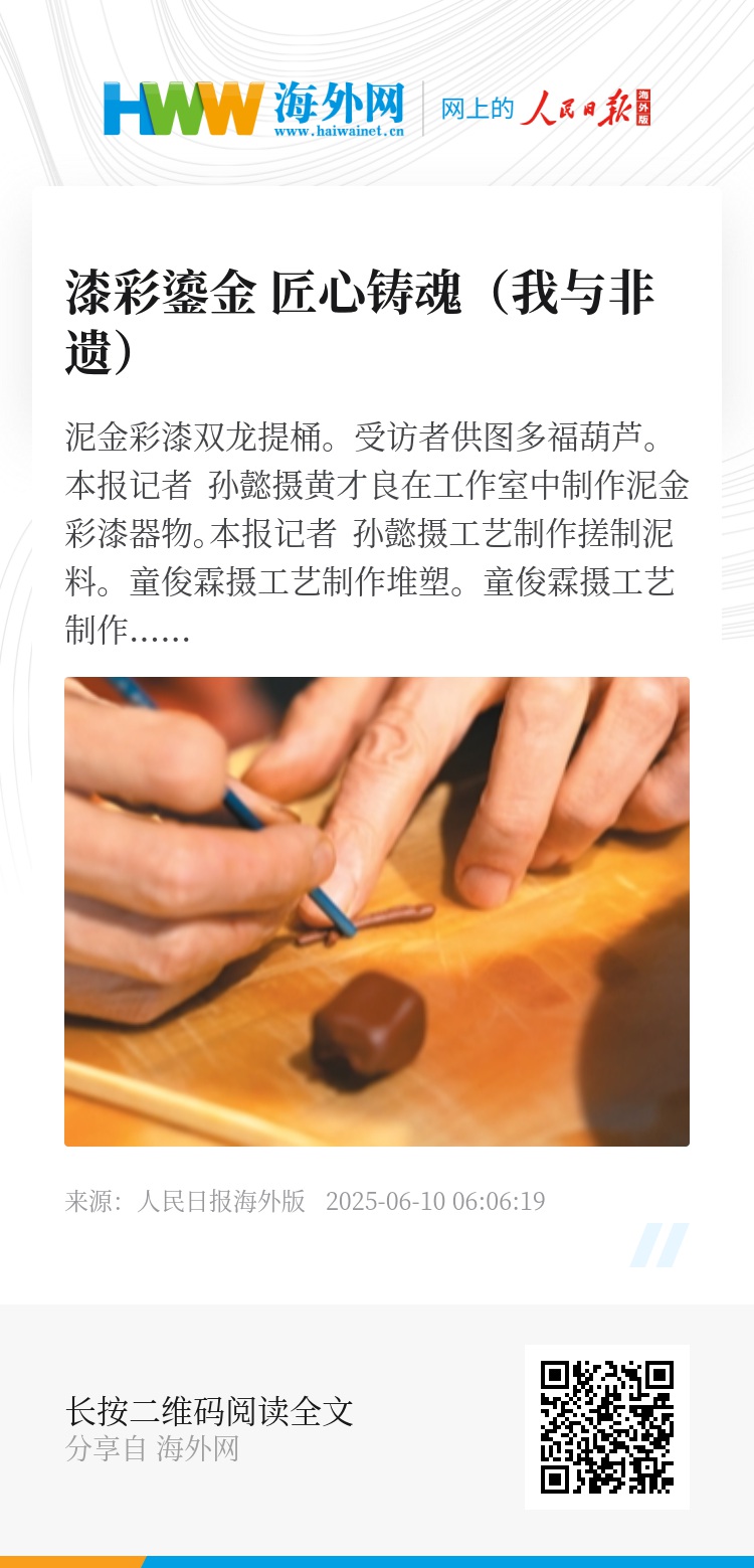 展望未来,黄才良充满信心。他计划借助AI等新技术,打造线上展示平台,让泥金彩漆跨越地域的限制,走进千家万户。在他心中,泥金彩漆不仅仅是一门技艺,更是一份文化的传承,是连接过去与未来的桥梁。黄才良用坚守续写着泥金彩漆的传奇故事,让古老的技艺在新时代绽放出更加绚烂的光彩。(记者 孙懿)