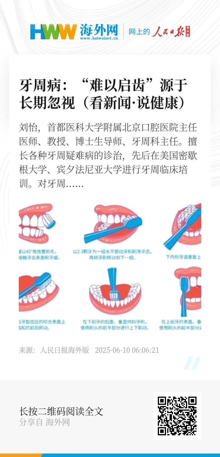 刘怡:最重要的是养成良好口腔保健意识和口腔卫生习惯。在预防和治疗过程中,主观能动地进行口腔卫生护理,是牙周病预防和治疗的重中之重。