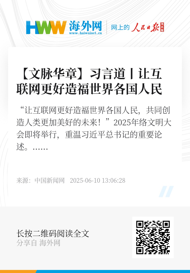 “让互联网更好造福世界各国人民,共同创造人类更加美好的未来!”2025年中国网络文明大会即将举行,重温习近平总书记的重要论述。