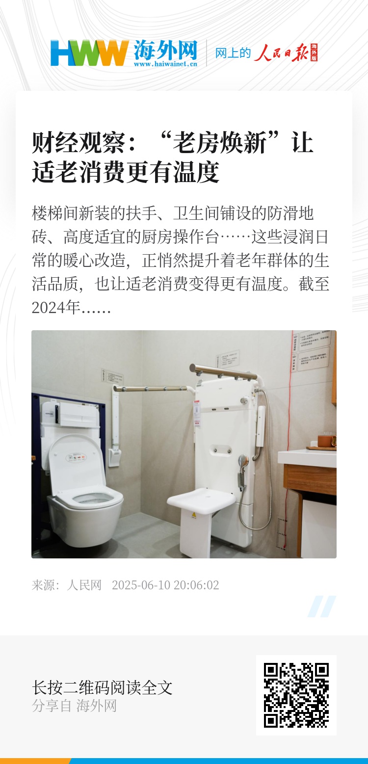 楼梯间新装的扶手、卫生间铺设的防滑地砖、高度适宜的厨房操作台……这些浸润日常的暖心改造,正悄然提升着老年群体的生活品质,也让适老消费变得更有温度。