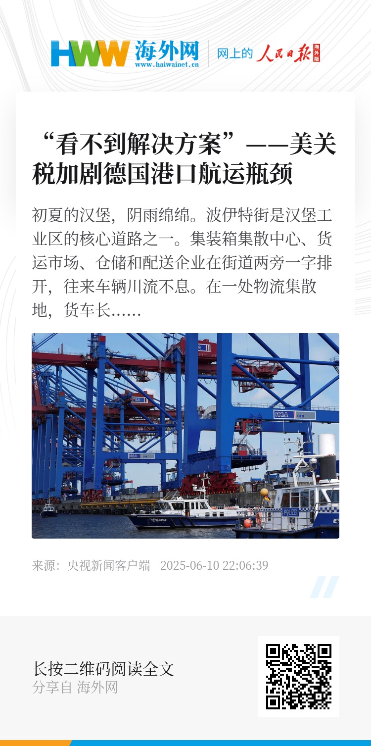 美国关税政策带来的不确定性正日益危及国际贸易,也给德国重要港口汉堡港和不来梅港带来严峻挑战。