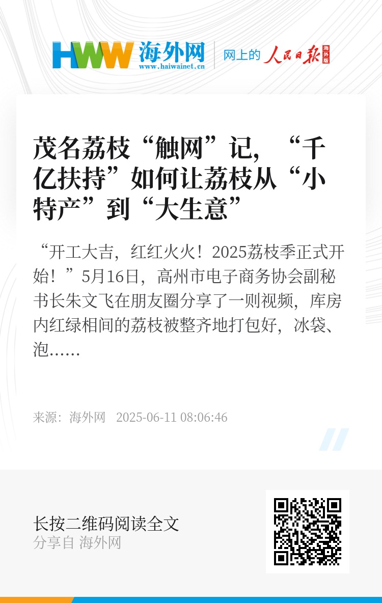朱文飞观察到,近年来,高州越来越多人开始投身电商行业,尤其是返乡创业的年轻人。这些新生力量推动着当地电商不断加强品牌建设和品质把控,也助力广东荔枝破解“锁鲜难”的困境,搭着冷链快车送达全国各地的消费者手中。