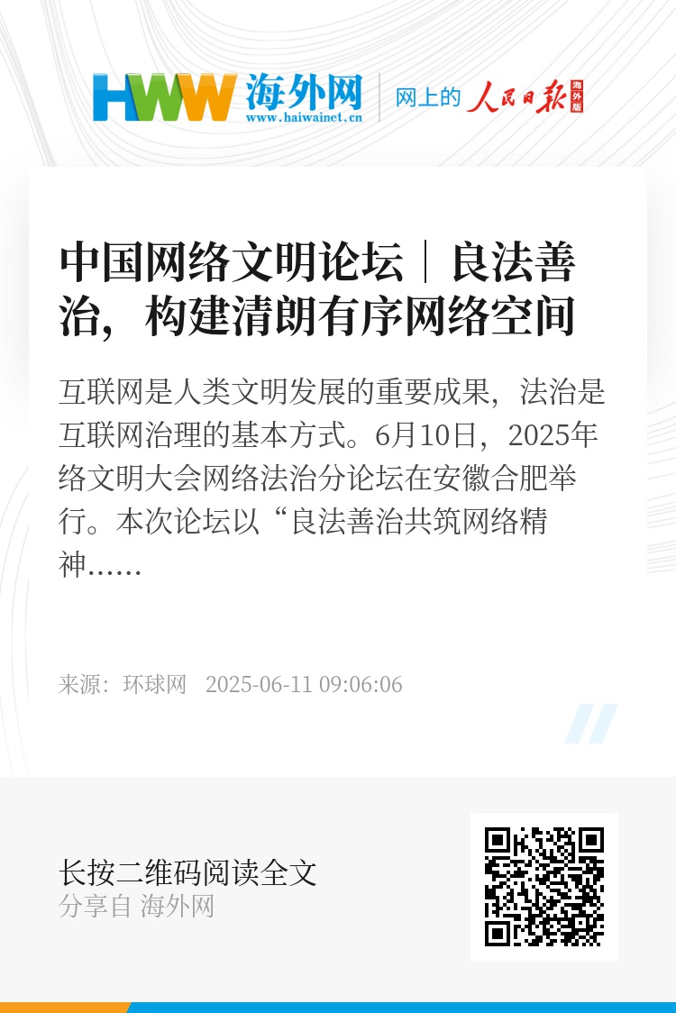 历史长河奔涌向前,法治始终是文明进步的压舱石。从“网络大国”迈向“网络强国”,我们既需要法律制度的钢筋铁骨,也离不开文明素养的春风化雨。以此次论坛为契机,持续完善网络法治体系、创新治理手段、深化国际合作,必将让互联网这个最大变量成为事业发展的最大增量。在法治阳光的照耀下,一个更加安全、清朗、繁荣的网络精神家园,必将为民族复兴注入澎湃动能,为人类文明进步贡献东方智慧。(甄郝)