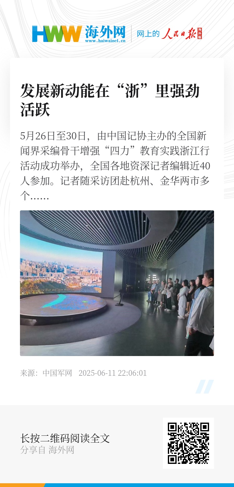 5月26日至30日,由中国记协主办的全国新闻界采编骨干增强“四力”教育实践浙江行活动成功举办,全国各地资深记者编辑近40人参加。记者随采访团赴杭州、金华两市多个县(市、区)实地调研采访,大家一起乘汽车、坐轮船、走山路,下社区、进工厂、入村庄,用脚丈量、用眼观察、用脑思考、用笔记录浙江大地的美丽图景,近距离感受浙江作为中国式现代化先行者、高质量发展建设共同富裕示范区的担当勇为,从人间天堂杭州“六小龙”的爆火出圈到“浙江之心”金华的“繁花绽放”,从大下姜村联建联兴联享的共富图景到“世界小商品之都”义乌的“买全球卖全球”,从良渚古城遗址的“数字未来”到走红海外的中国婺剧,从金华飘萍教育基地的红色新闻文化到义乌市融媒体中心的系统性变革……“浙”里经济的创新活力、“浙”里文脉的传承发展、“浙”里乡村的美丽蝶变,令人目不暇接、印象深刻,一幅用生动实践书写的美丽画卷铺展在浙江大地上。