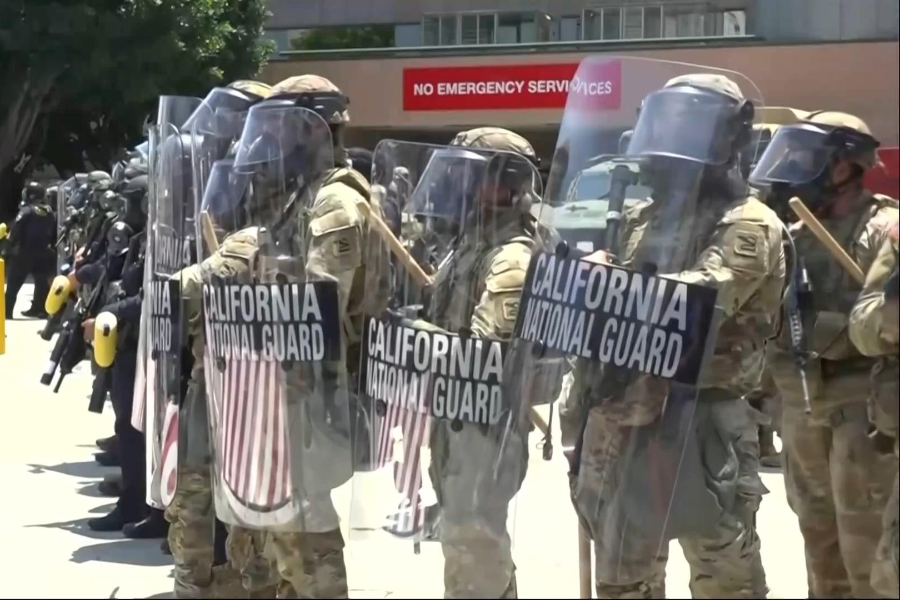美国军方官员当天表示,驻扎在洛杉矶的部队已获得授权,在执法人员到达前可对个人进行临时拘留。(总台记者 张颖哲)