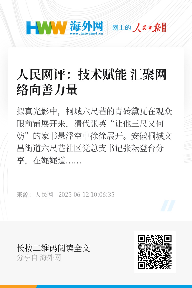 拟真光影中,桐城六尺巷的青砖黛瓦在观众眼前铺展开来,清代张英“让他三尺又何妨”的家书悬浮空中徐徐展开。安徽桐城文昌街道六尺巷社区党总支书记张耘登台分享,在娓娓道来中展现化解矛盾、和合共生这一跨越时空的处世智慧与治理哲学。日前举办的2025年中国网络文明大会“科技·点亮网络文明时空”主题活动,借助艺术展演、文化讲述、科技演讲等丰富形式,全方位展现出传统文化与现代科技交融共生的网络文明新图景。