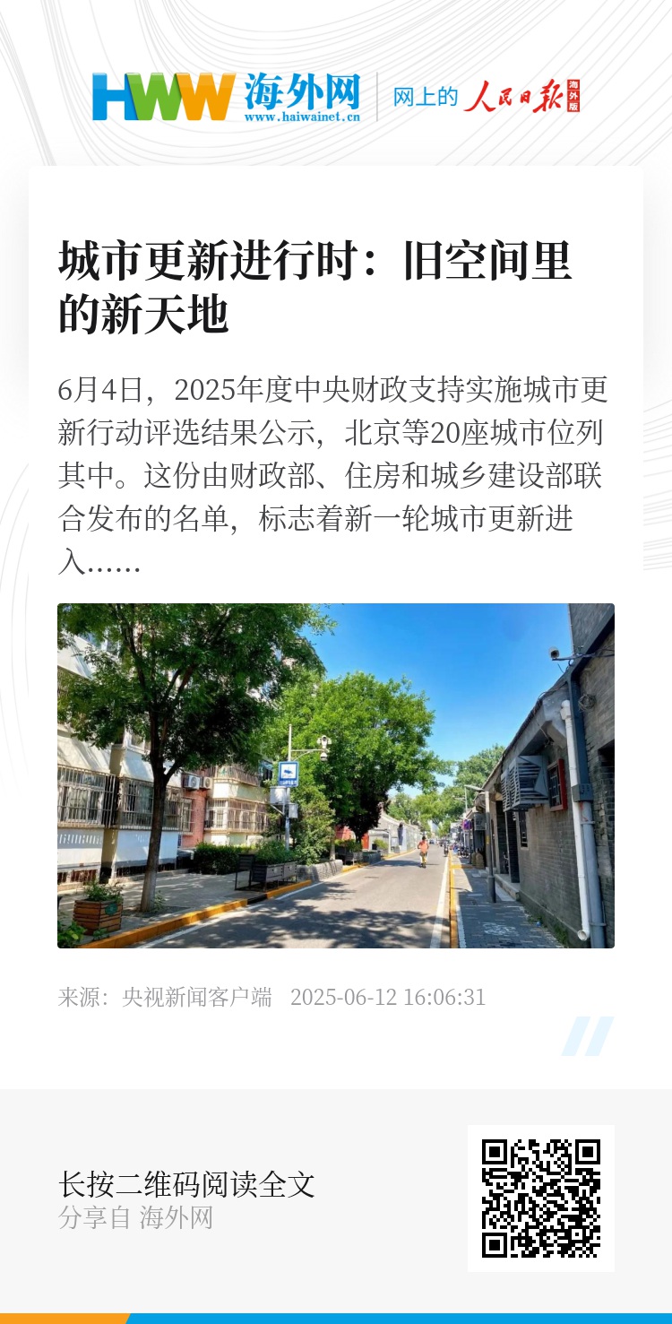 6月4日,2025年度中央财政支持实施城市更新行动评选结果公示,北京等20座城市位列其中。这份由财政部、住房和城乡建设部联合发布的名单,标志着新一轮城市更新进入加速期。