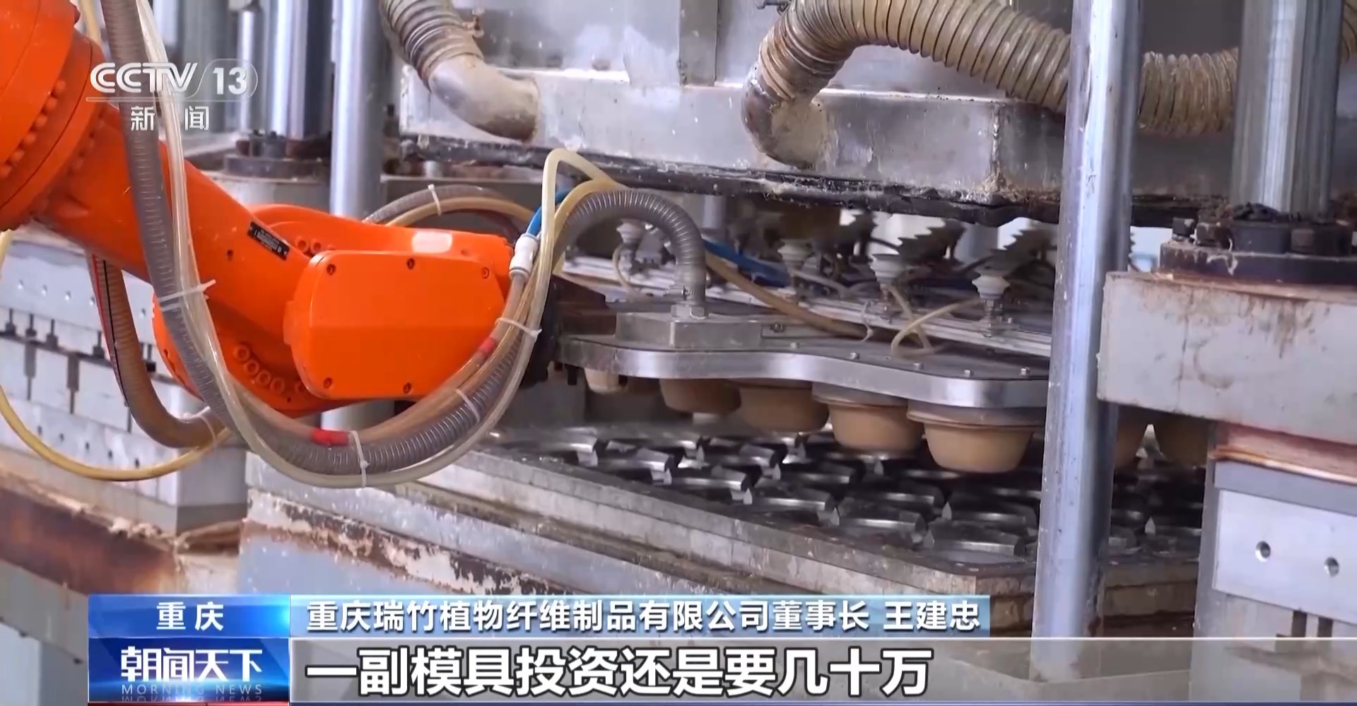 重庆瑞竹植物纤维制品有限公司董事长 王建忠:我们要根据市场的需求开发新的模具,一副模具投资要几十万,这种产业线我们已经上了12条,马上我们还准备新建一个车间,再上16条生产线。