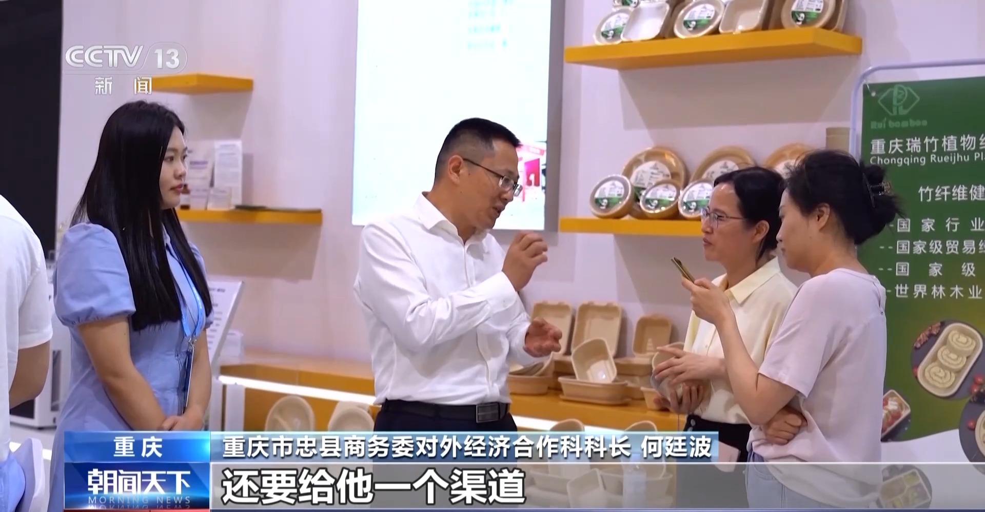 重庆市忠县商务委对外经济合作科科长 何廷波:要给企业搭建平台,也要给他渠道。一是帮助企业设计适合国内市场销售的一些产品,二是通过申请和打造属于自己企业专属的,走自己的品牌化路线。三是通过帮助企业争取大型国际展会资格,让我们的企业能够获取更多的销售渠道。