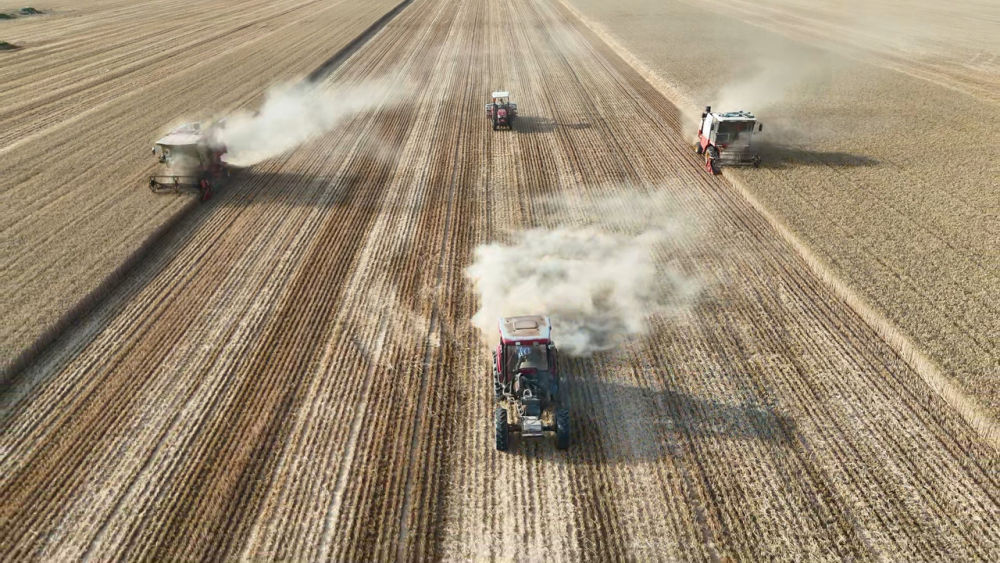 河南省滑县种粮大户杜焕永说,“我们接下来,要引进更好的种植技术、更好的管理技术、先进的农业机械设备,在粮食单产提升上大下功夫。目前,我们的小麦玉米每亩已经突破了‘吨半粮’,我们未来的预期目标是往‘双吨粮’去努力,带领我们更多农民,在这个粮食丰产丰收上贡献我们新时代农民的力量。”