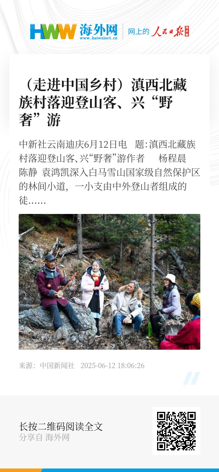 中新社云南迪庆6月12日电 题:滇西北藏族村落迎登山客、兴“野奢”游