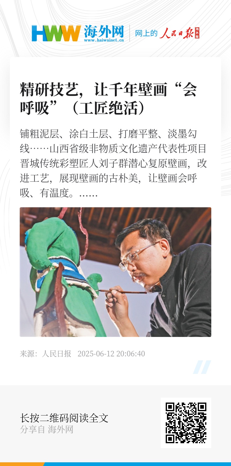 “非遗技艺要紧跟时代,才能从‘冷门’变为‘热门’。未来,既要秉承传统,培养新人,也要坚持学术研究,深挖山西传统壁画彩塑技艺的历史文化价值,为文物保护提供科学依据。”刘子群说。(记者 马睿姗)