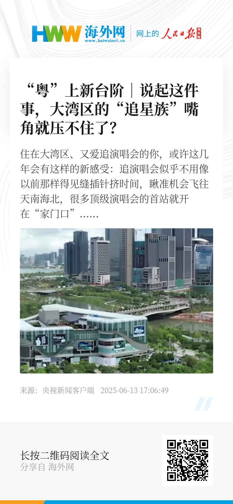 这几年,“港车北上”“澳车北上”,深中通道、黄茅海通道等等一系列便利大湾区内地与港澳流动的新政、新基建相继落地,让大湾区居民跨境“追星便利指数”直线上升。有不少人就利用大湾区“一程多站”的便利出行方式,来一次就把多场演唱会的火热体验“打包带走”。