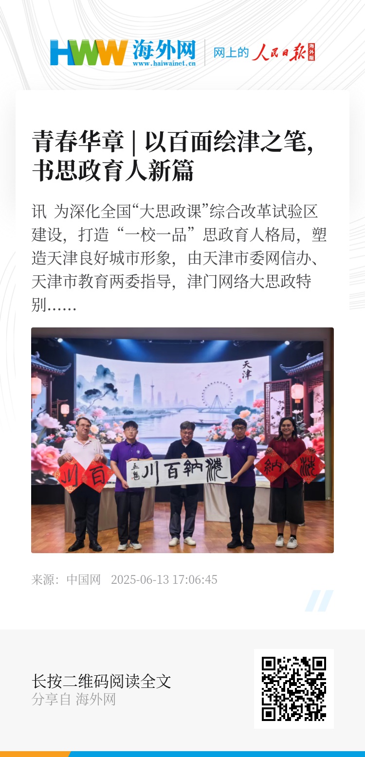 据了解,为立体展现新时代天津的城市风貌与精神内核,天津市委网信办携手中国网创新打造了“百面绘天津”天津网信正能量传播品牌。品牌通过挖掘100位来自各行各业的杰出代表,以鲜活的个体故事和奋斗群像,勾勒出天津城市的立体图景与精神图谱,激励广大青少年将个人理想融入城市发展、国家进步的宏伟蓝图,挺膺担当,书写华章。