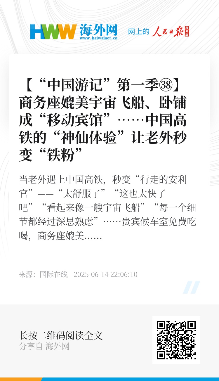 当老外遇上中国高铁,秒变“行走的安利官”——“太舒服了”“这也太快了吧”“看起来像一艘宇宙飞船”“每一个细节都经过深思熟虑”……