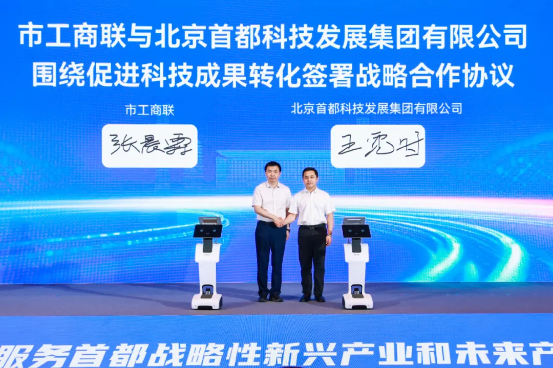 市科委中关村管委会、市经信局宣讲引导支持服务首都战略性新兴产业和未来产业发展的政策举措。市工商联与北京首都科技发展集团有限公司围绕促进科技成果转化、与民生银行北京分行围绕金融支持实体经济分别签署战略合作协议。北京城市副中心推介重点产业和营商环境建设情况。