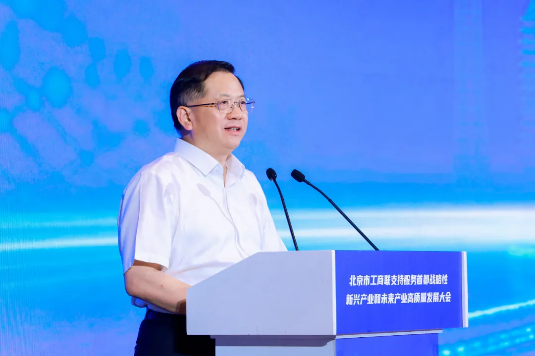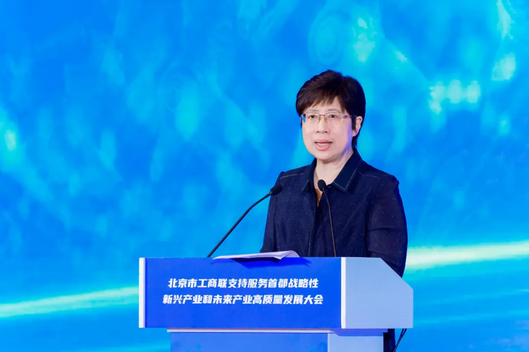 6月12日,市工商联支持服务首都战略性新兴产业和未来产业高质量发展大会在北京国际财富中心召开。全国工商联副主席安立佳出席并致辞,市政协副主席、市工商联主席燕瑛出席并讲话,全国工商联副秘书长、经济服务部部长林泽炎出席,北京市委统战部副部长、市工商联党组书记严卫群主持会议。