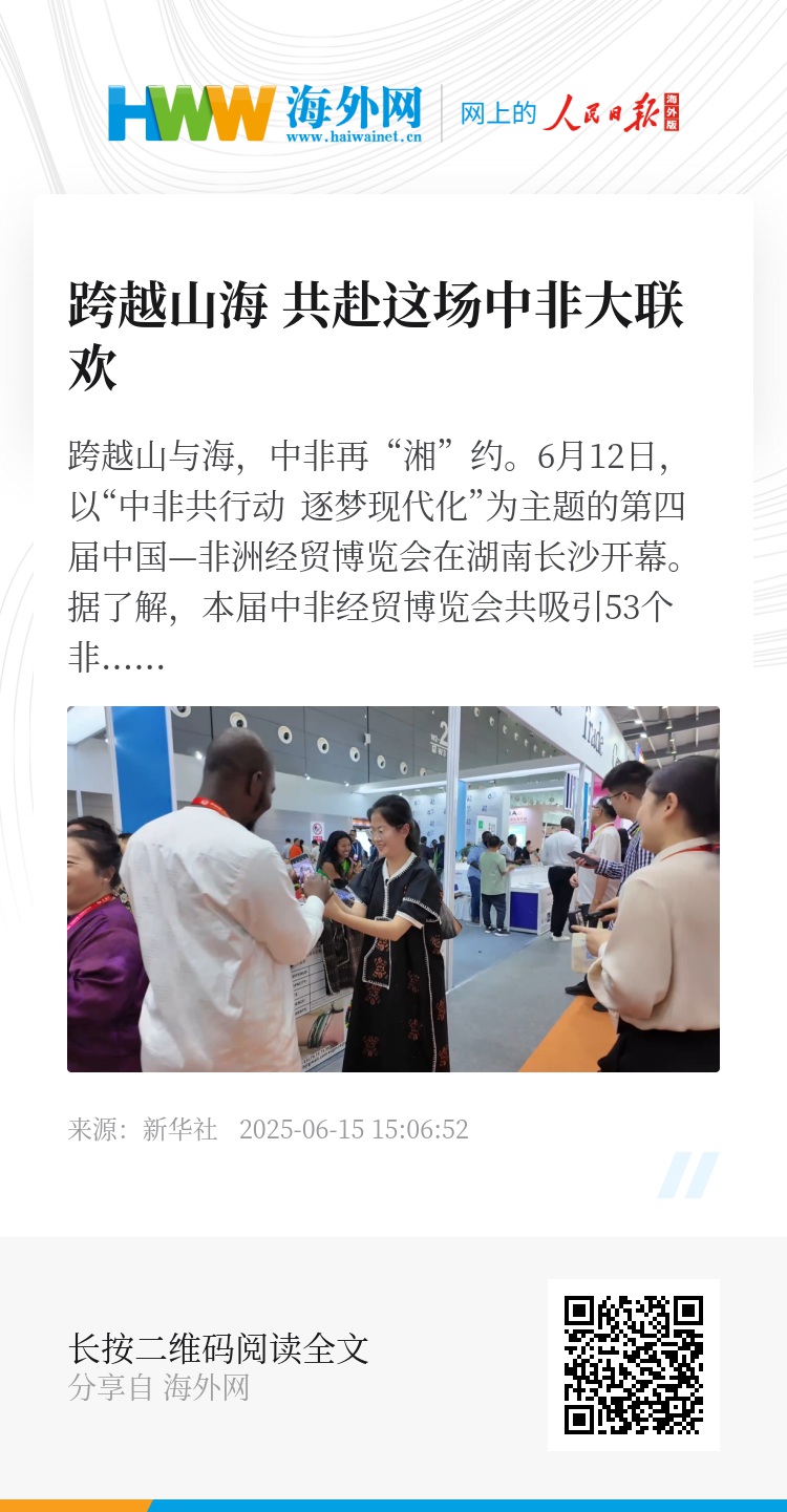 跨越山与海,中非再“湘”约。6月12日,以“中非共行动 逐梦现代化”为主题的第四届中国—非洲经贸博览会在湖南长沙开幕。