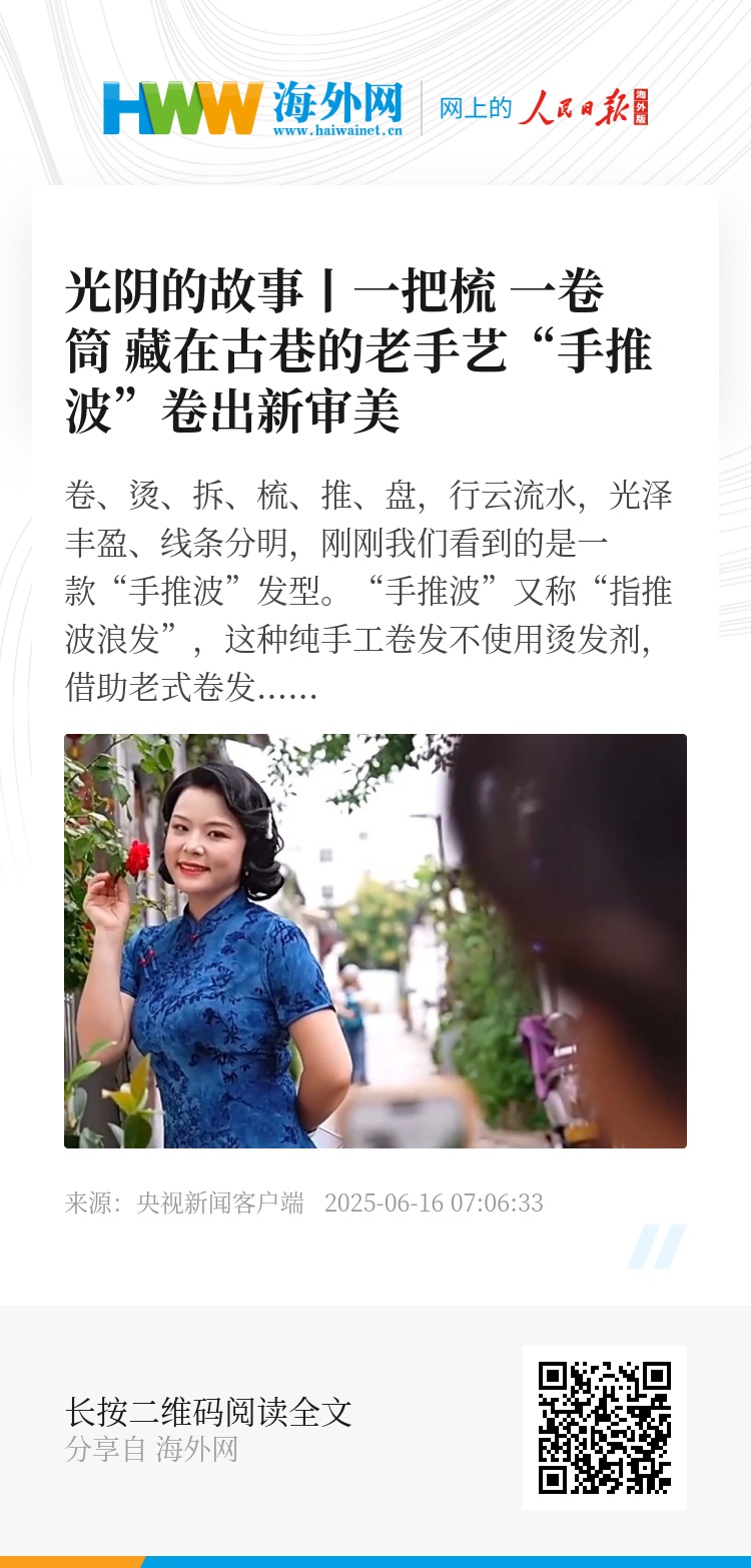 一把梳,一卷筒,指尖翻飞间,流淌的是老手艺述说的光阴故事。“手推波”在发丝间的拿捏与力道,凝结着手艺人的温度与坚持。小桥流水、粉墙黛瓦,在这座以园林艺术闻名的城市里,复古审美在当代文旅体验中破圈而出,手工推卷的波浪,光泽柔美,流淌和闪烁的正是时光和匠心。