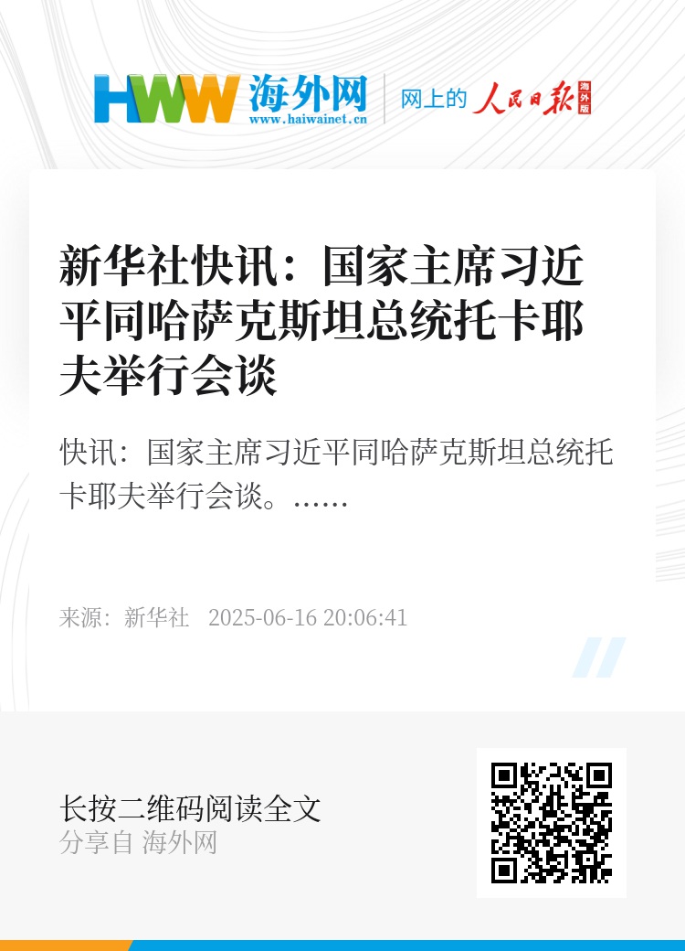 新华社快讯:国家主席习近平同哈萨克斯坦总统托卡耶夫举行会谈