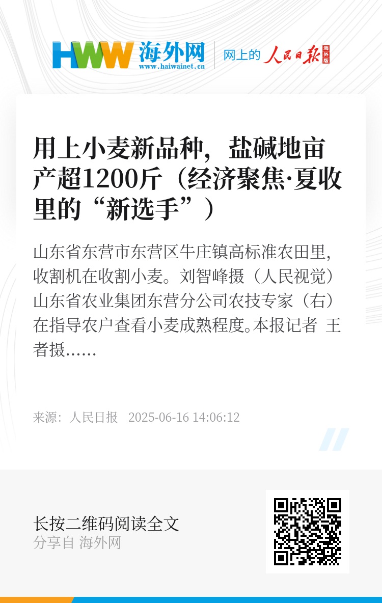 小小种子蕴藏着十足的科技含量。“齐民27”是由淄博禾丰种业公司在2024年5月推出的小麦新品种,茎秆坚韧,株高适中,具有良好的抗倒伏能力,适合在盐碱地等干旱缺水条件下种植。