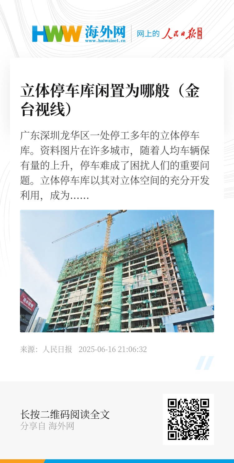 在许多城市,随着人均车辆保有量的上升,停车难成了困扰人们的重要问题。立体停车库以其对立体空间的充分开发利用,成为解决停车难的一种有效选择。然而,有不少读者反映,一些地方的立体停车库,尤其是一些机械立体停车库建好后,出现了整体闲置、利用率不高等问题。