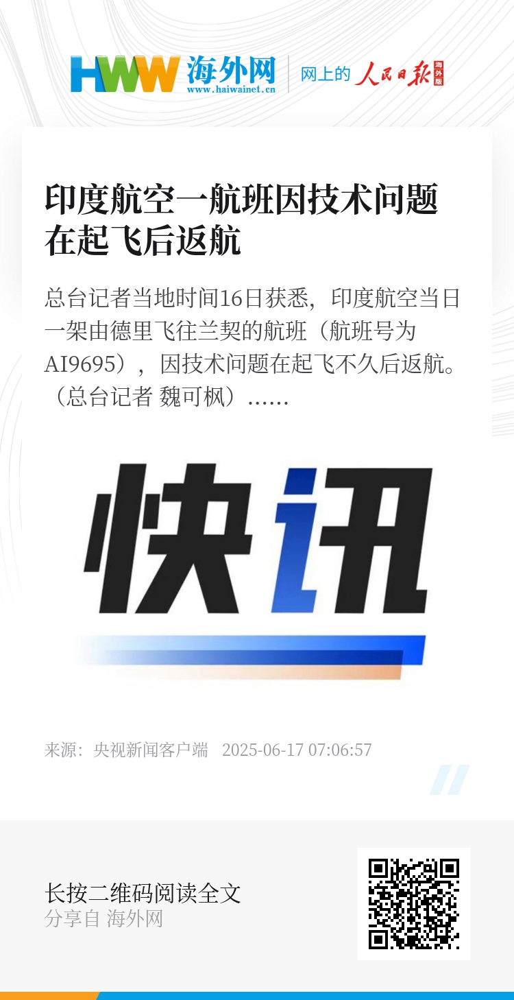 总台记者当地时间16日获悉,印度航空当日一架由德里飞往兰契的航班(航班号为AI9695),因技术问题在起飞不久后返航。(总台记者 魏可枫)