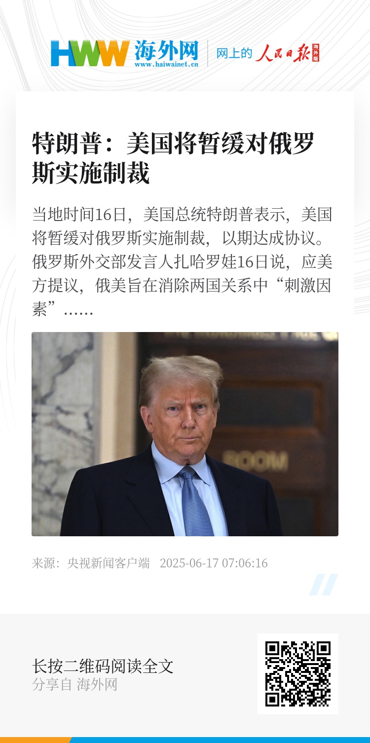 当地时间16日,美国总统特朗普表示,美国将暂缓对俄罗斯实施制裁,以期达成协议。
