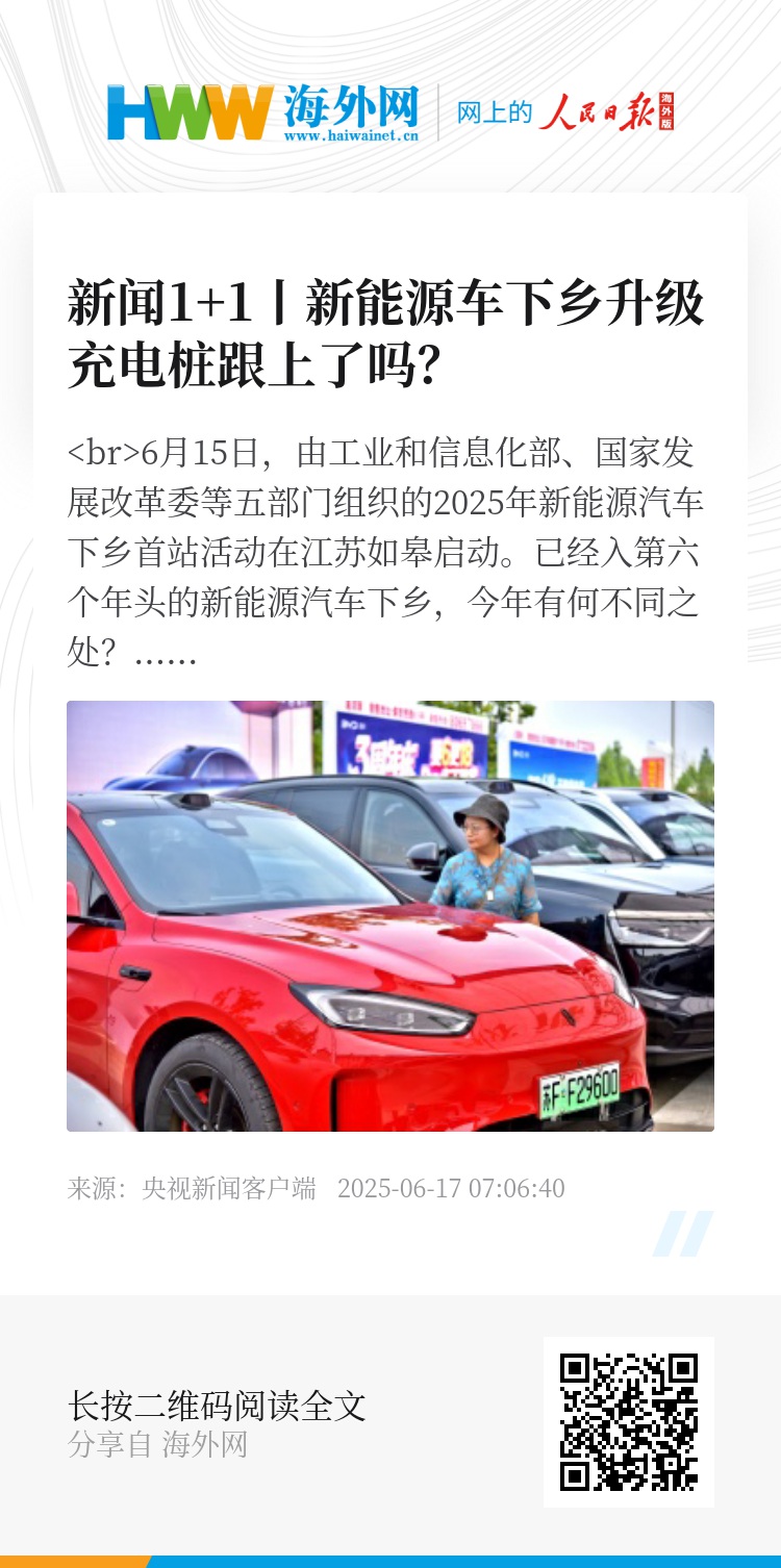 6月15日,由工业和信息化部、国家发展改革委等五部门组织的2025年新能源汽车下乡首站活动在江苏如皋启动。已经入第六个年头的新能源汽车下乡,今年有何不同之处?