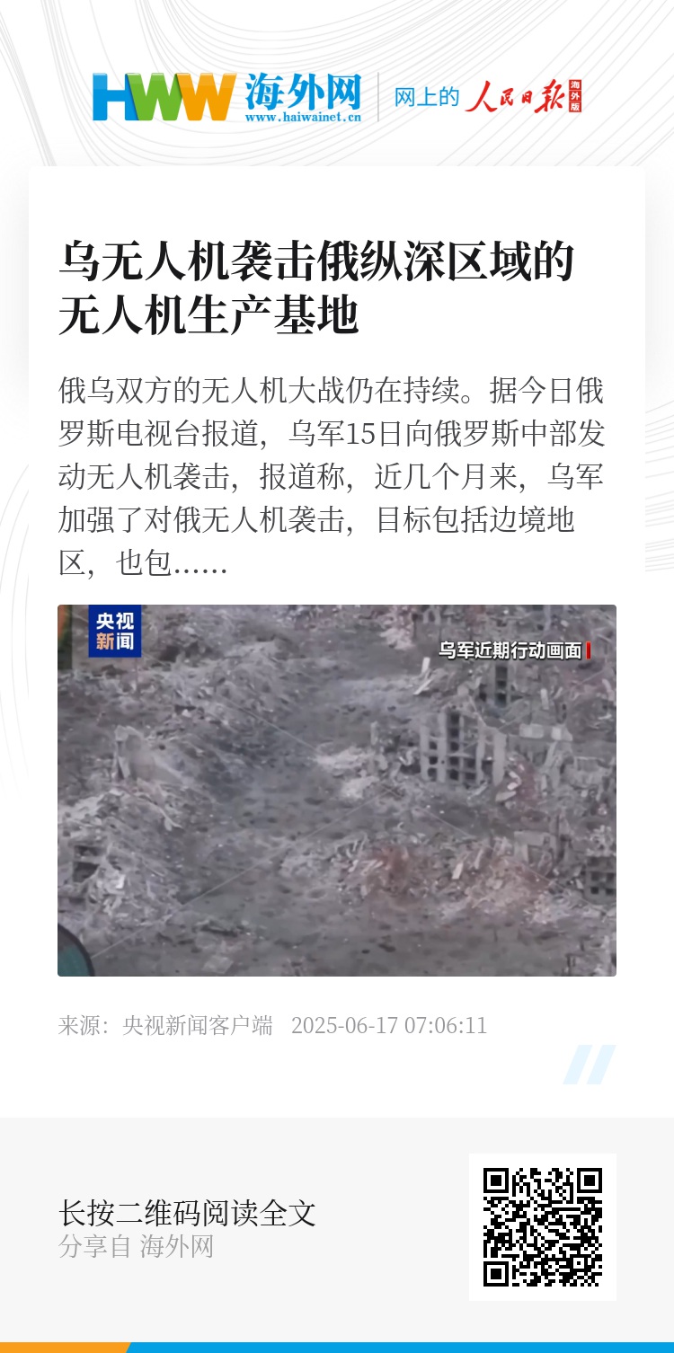 同一天,乌克兰武装部队总参谋部发布战报称,为了削弱俄军生产攻击型无人机的能力,乌军当天对俄军工综合体的一个重要目标实施了打击,该目标为位于俄罗斯中部鞑靼斯坦共和国的一处无人机生产基地。