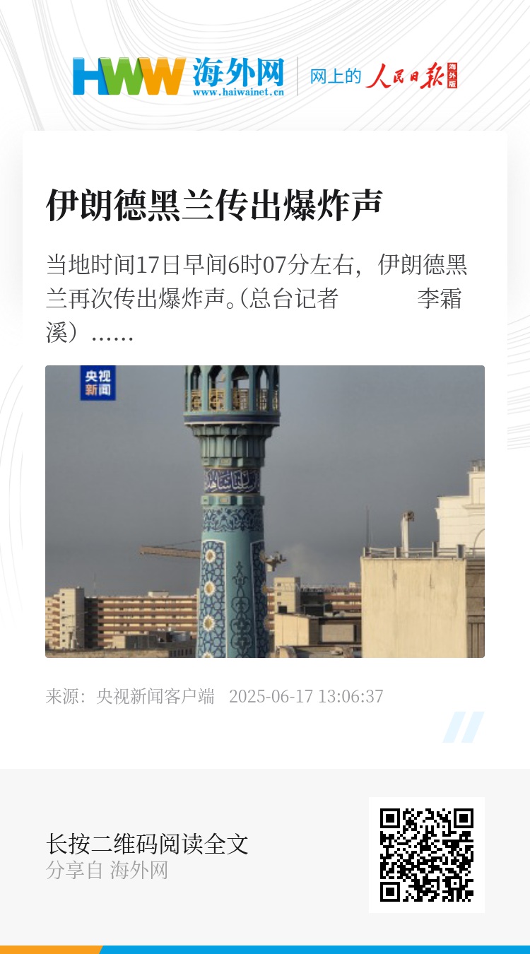 当地时间17日早间6时07分左右,伊朗德黑兰再次传出爆炸声。(总台记者 李霜溪)