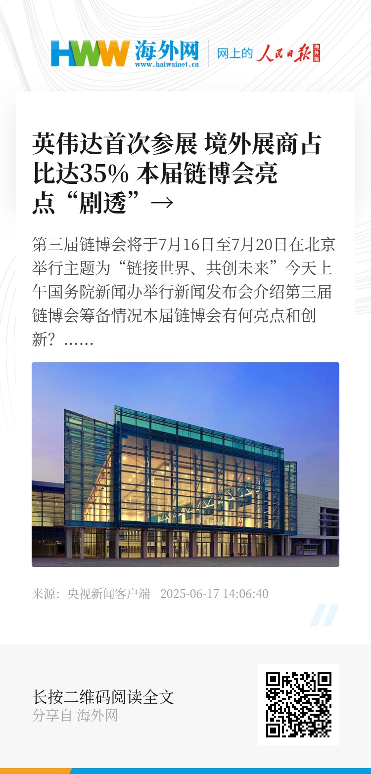 目前,650多家中外企业和机构将参展,涉及75个国家、地区和国际组织。世界500强和行业龙头企业占比超过65%。